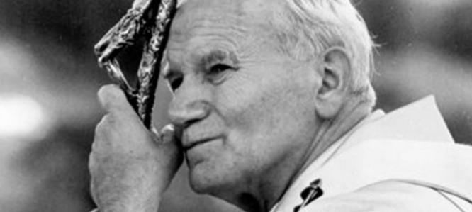 The origin of the words comes from St. Louis de Montfort's prayer of consecration to Mary. St. John Paul II entrusted his apostolic work to God through a total consecration to the Mother of Our Lord.